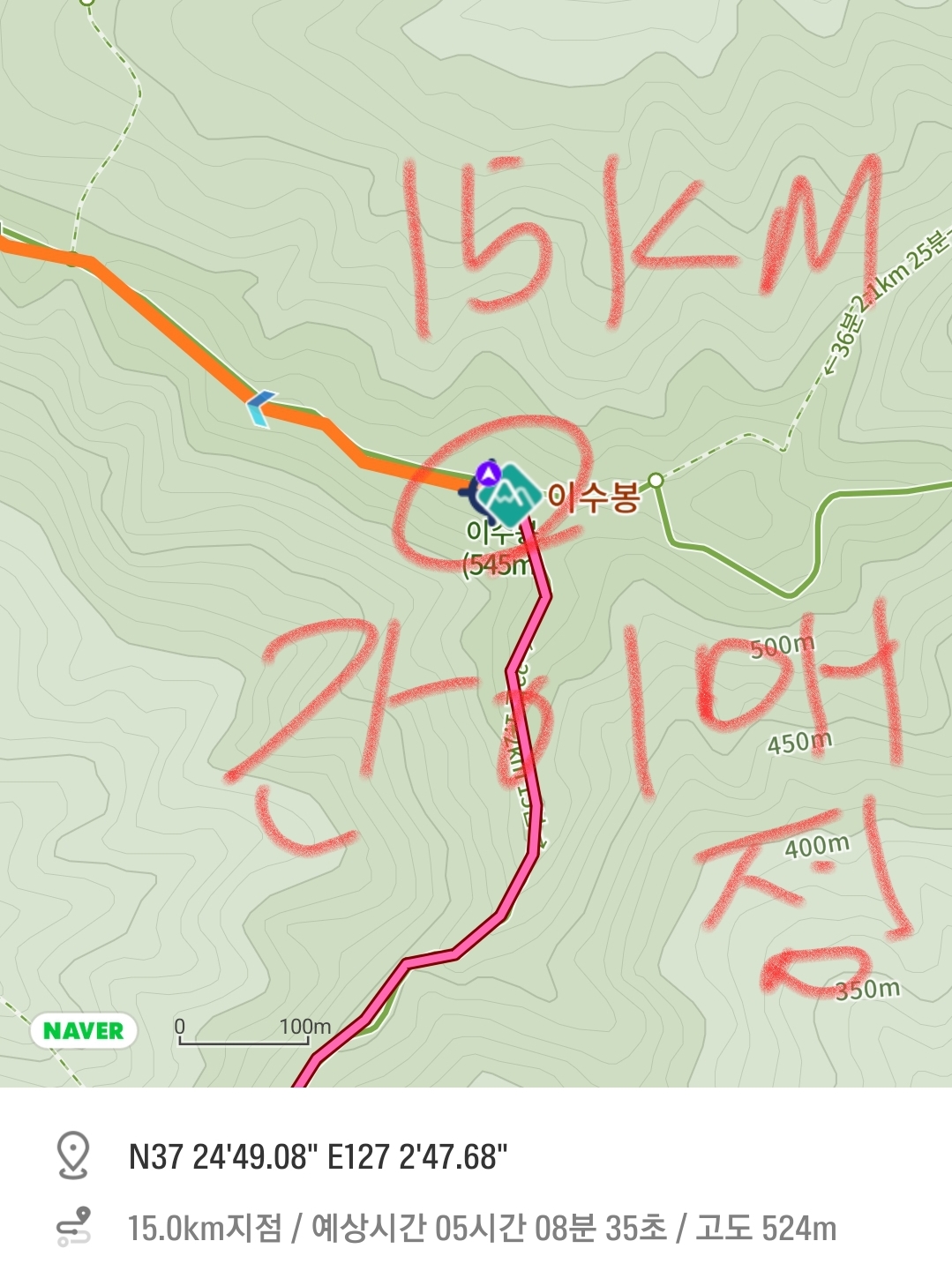 7km 주로 에서 많이 벗어남 비상용