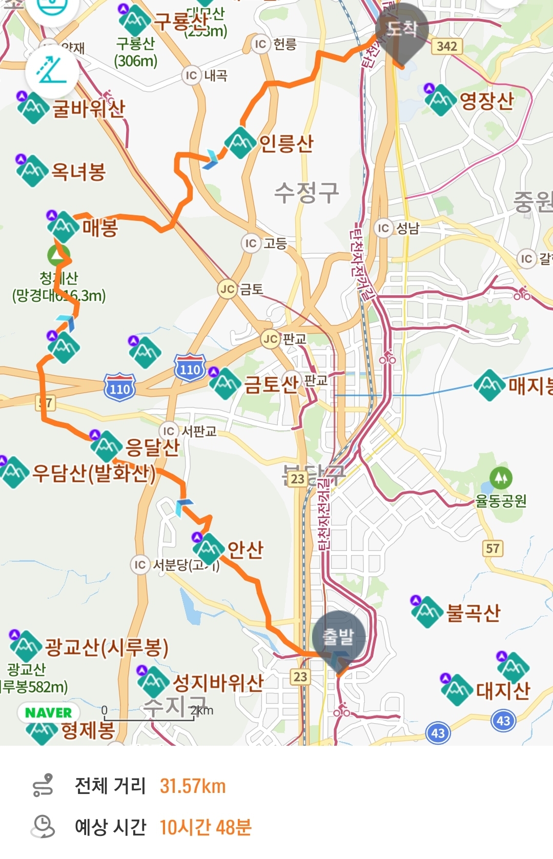성남누비길 5-6-7코스 대회 32km 대회 코스랑 동일