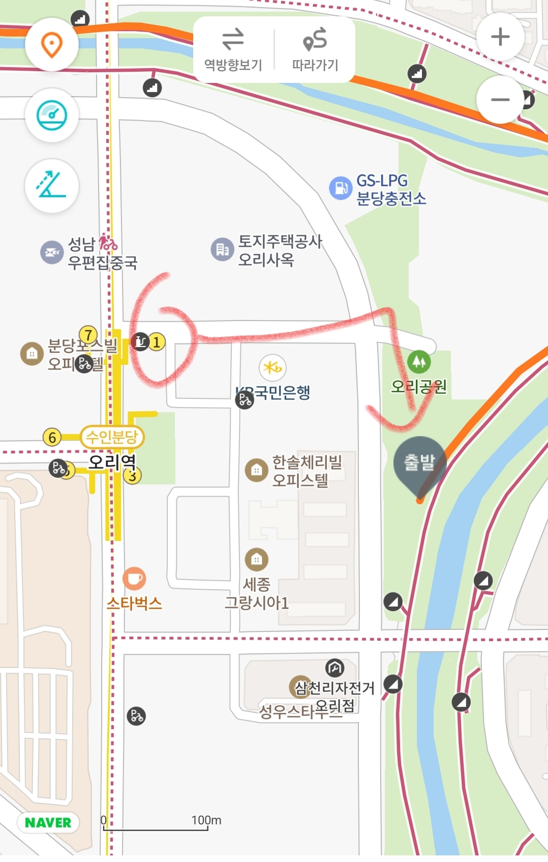 오리역 1번 출구 오리공원 시작